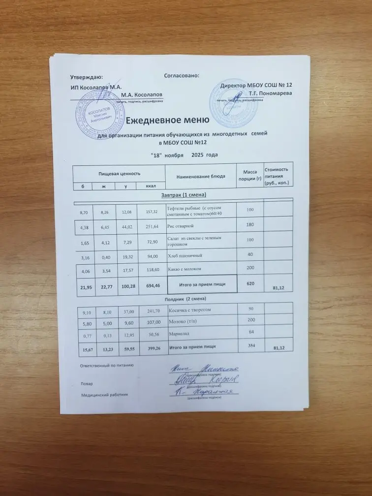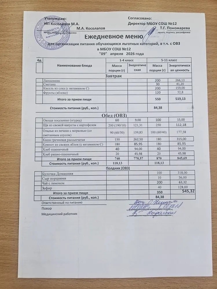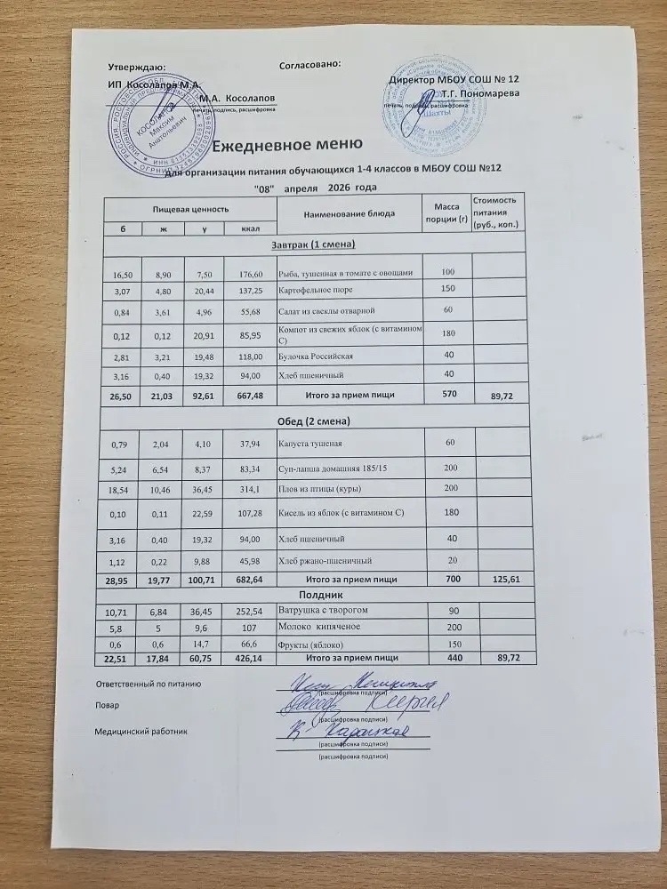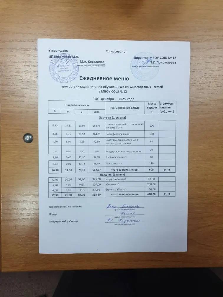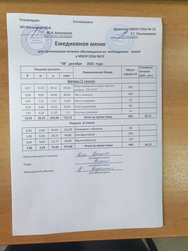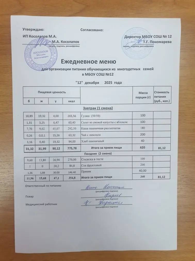 Организатор питания в МБОУ СОШ №12 г.Шахты — ИП Косолапов М.А.