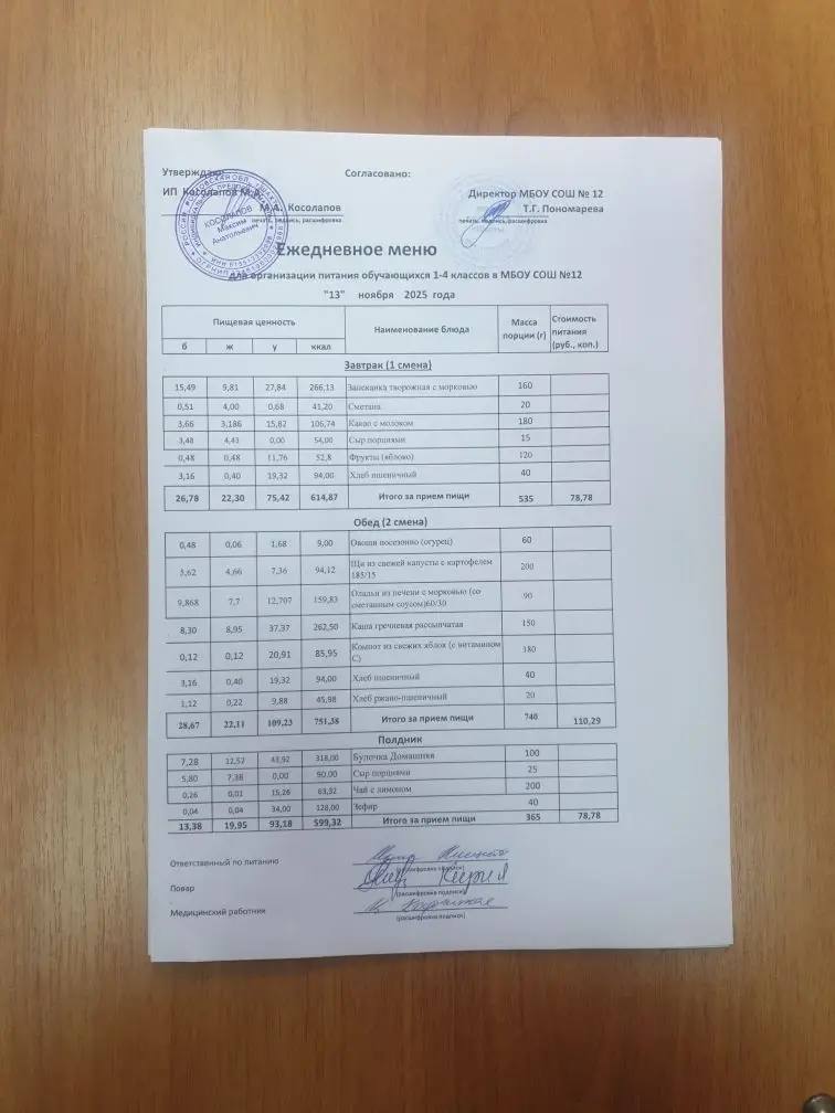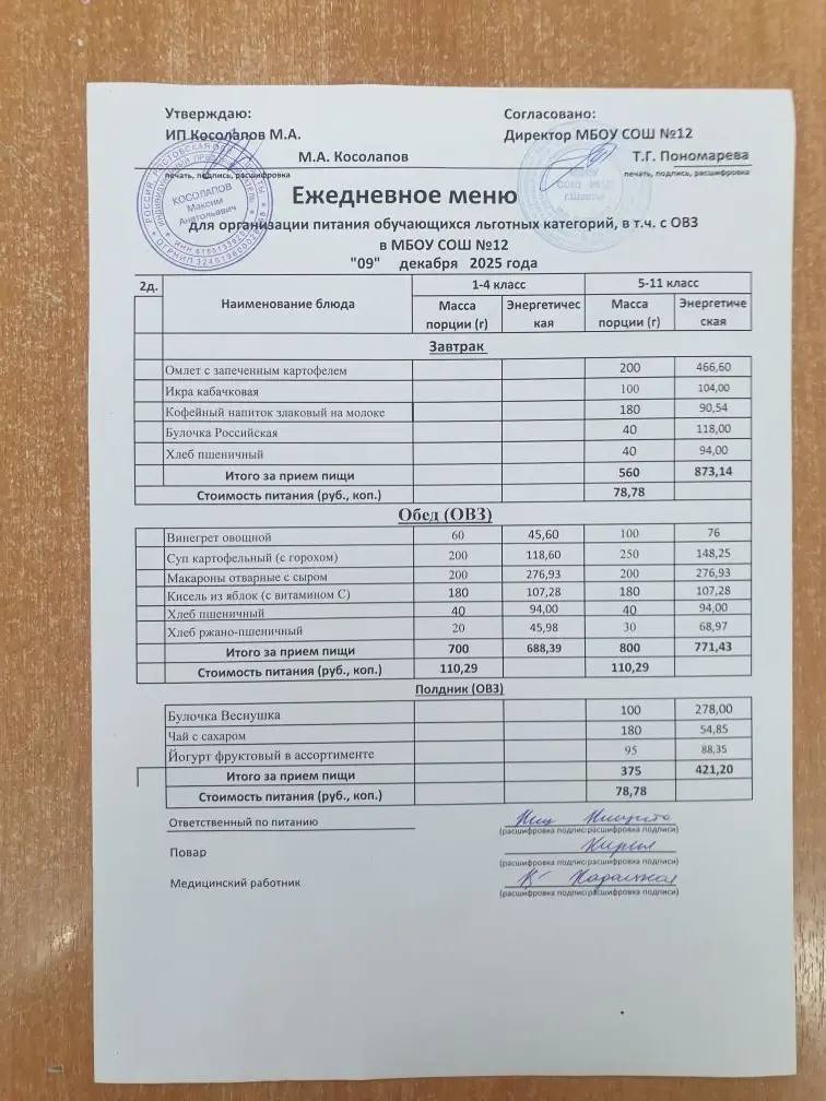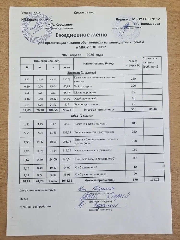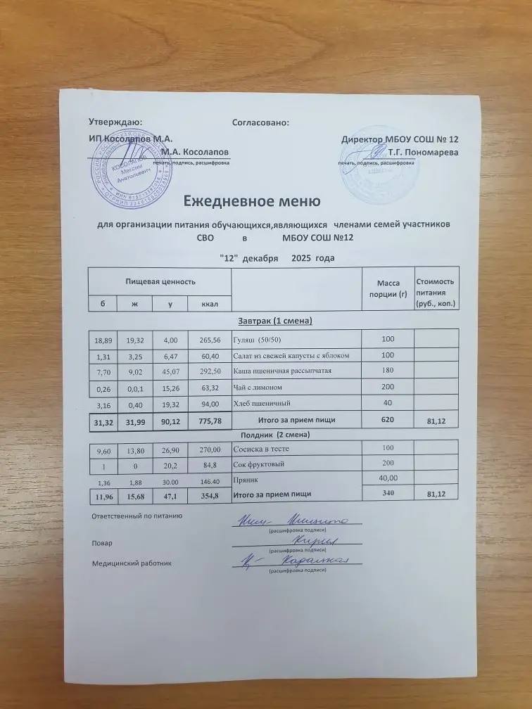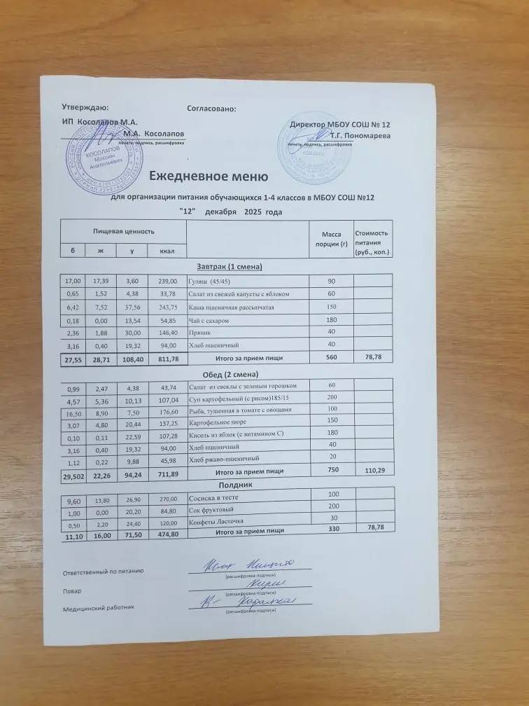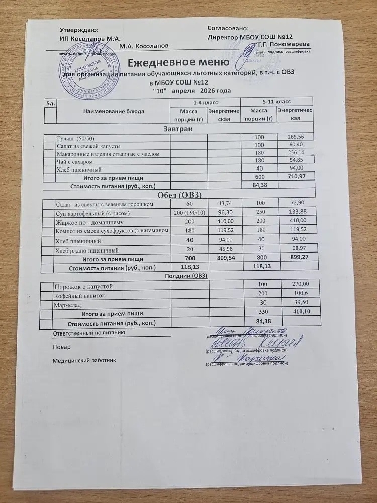 Организатор питания в МБОУ СОШ №12 г.Шахты — ИП Косолапов М.А.