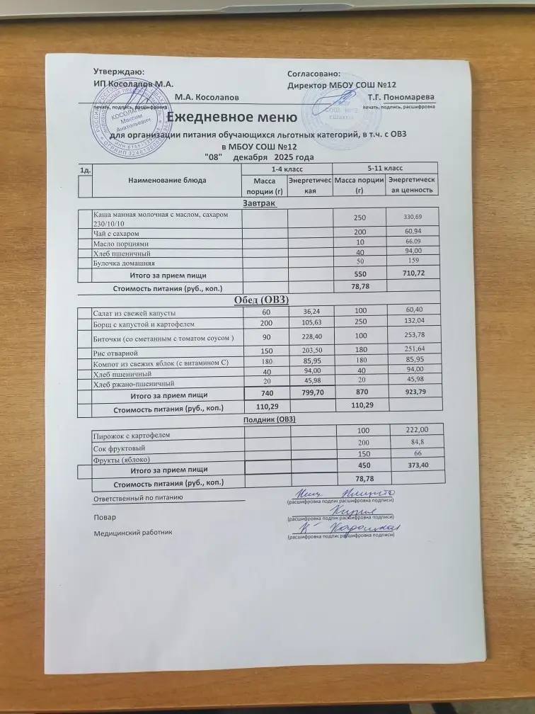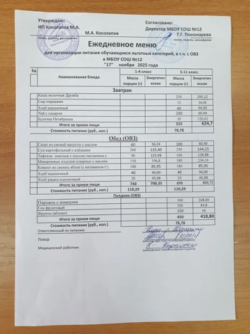 Меню 1-4 классы, ОВЗ, многодетные, СВО