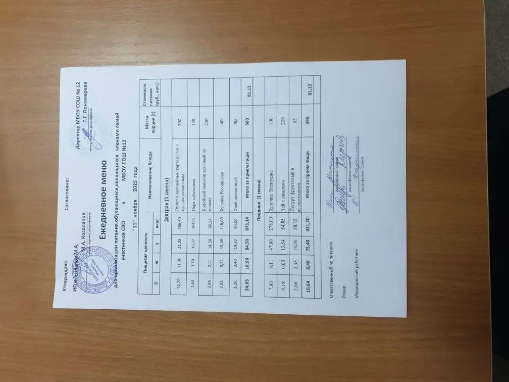Приказ №100 от 29.08.2-25 "Об организации питания в МБОУ СОШ №12 г.Шахты в 2025-2026 году (С ПРИЛОЖЕНИЯМИ)