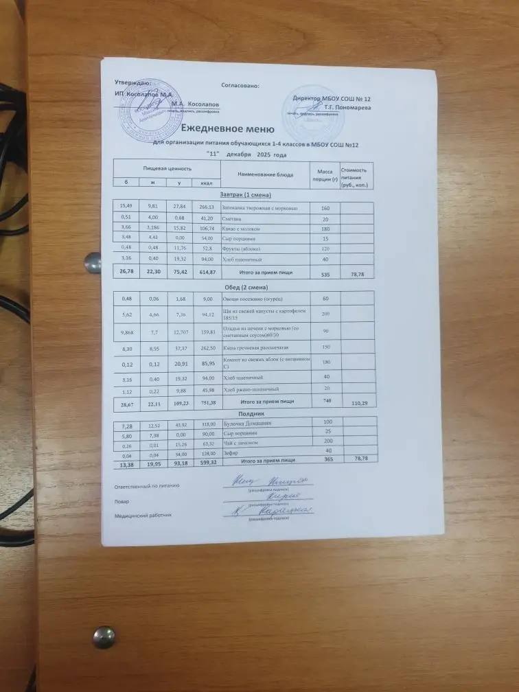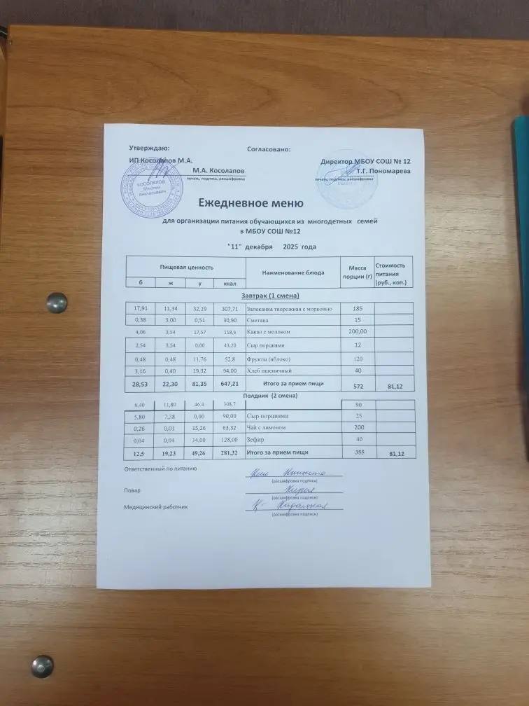 Ответственное лицо за организацию питания обучающихся в МБОУ СОШ №12 г.Шахты — Нищита Елена Николаевна (учитель математики и физики), телефон 8 (8636) 26-35-31
