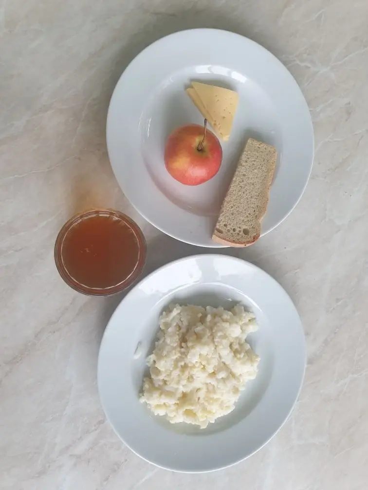 - Меню завтраков в обязательном порядке включает горячее блюдо (каша, запеканка, творожные или яичные блюда) и горячий напиток (чай, какао, кофейный напиток). Дополнительно могут быть добавлены продукты — источники витаминов, микроэлементов и клетчатки (овощи, фрукты, ягоды, орехи, йогурты).